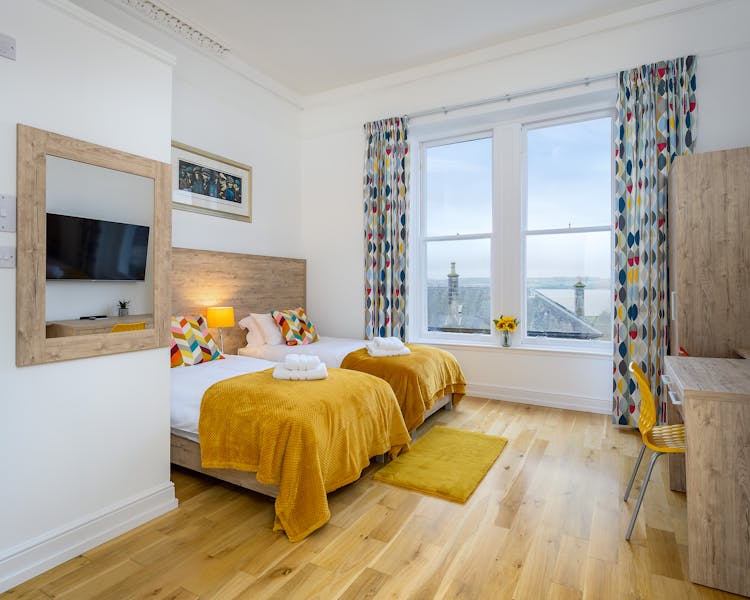 Step inside our Victorian Townhouse Hotel, which dates back from 1860 and set within an original Victorian Terrace – formerly named “Clarendon Terrace.” Recently modernised with many of the original features retained, chic furnishings, contemporary artwork and fantastic views over the River Tay and beyond. Each room hosts an ensuite with large walk-in monsoon head showers and separate small kitchenettes. There is also a laundry facility onsite.