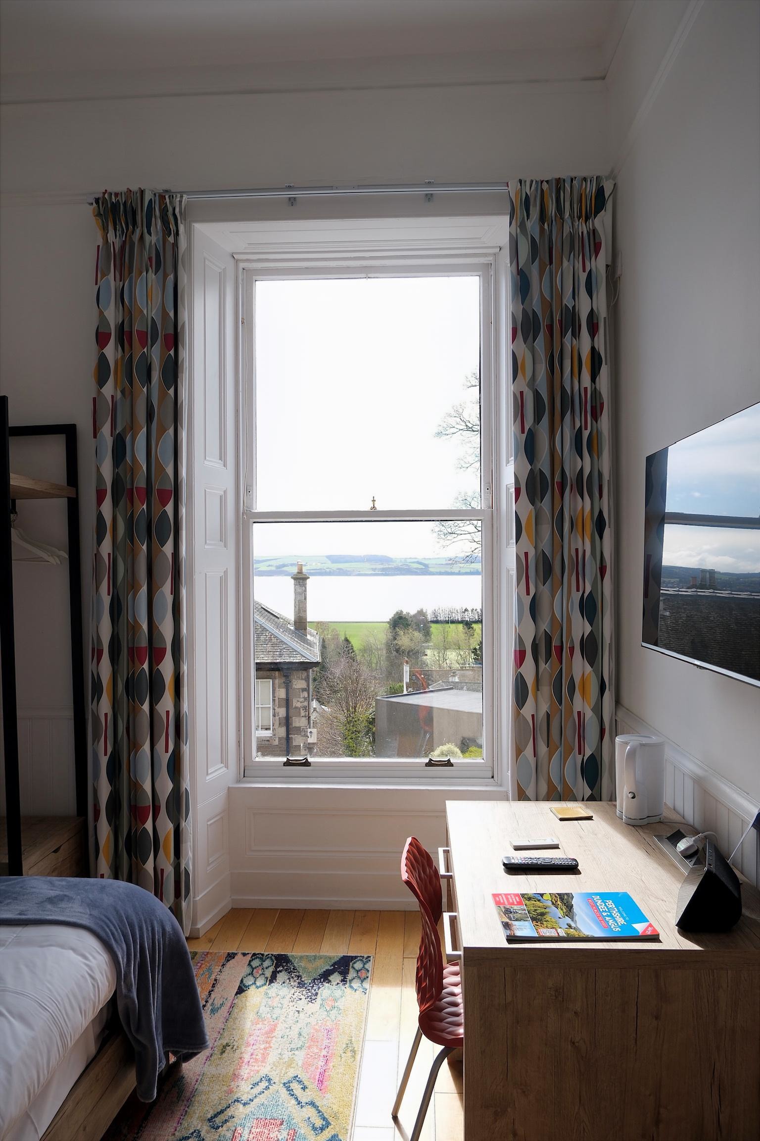 Step inside our Victorian Townhouse Hotel, which dates back from 1860 and set within an original Victorian Terrace – formerly named “Clarendon Terrace.” Recently modernised with many of the original features retained, chic furnishings, contemporary artwork and fantastic views over the River Tay and beyond. Each room hosts an ensuite with large walk-in monsoon head showers and separate small kitchenettes. There is also a laundry facility onsite.