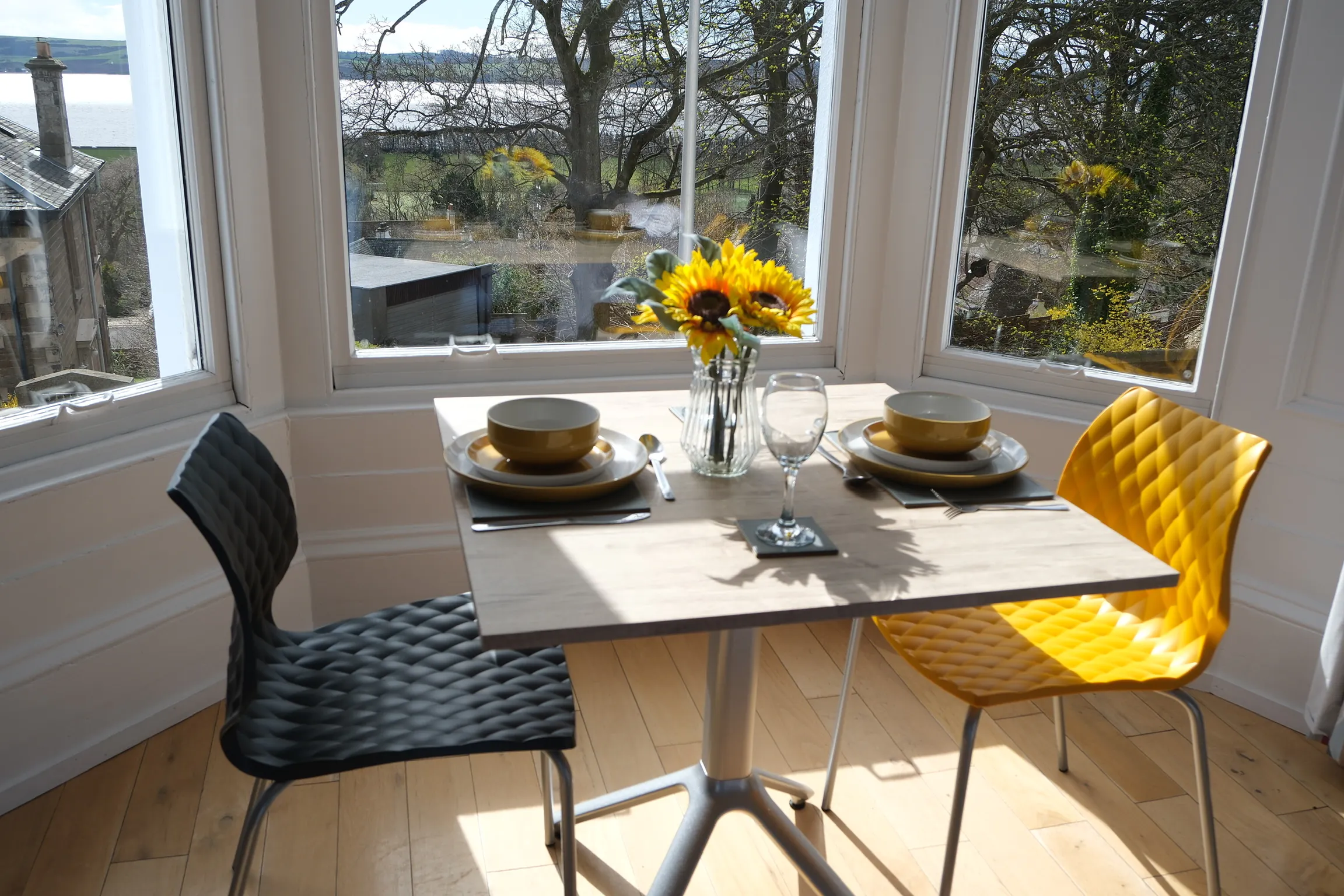 With a dinning table in the large bay window, guests can enjoy their breakfast or dinner watching the sun rise or set over the River Tay.