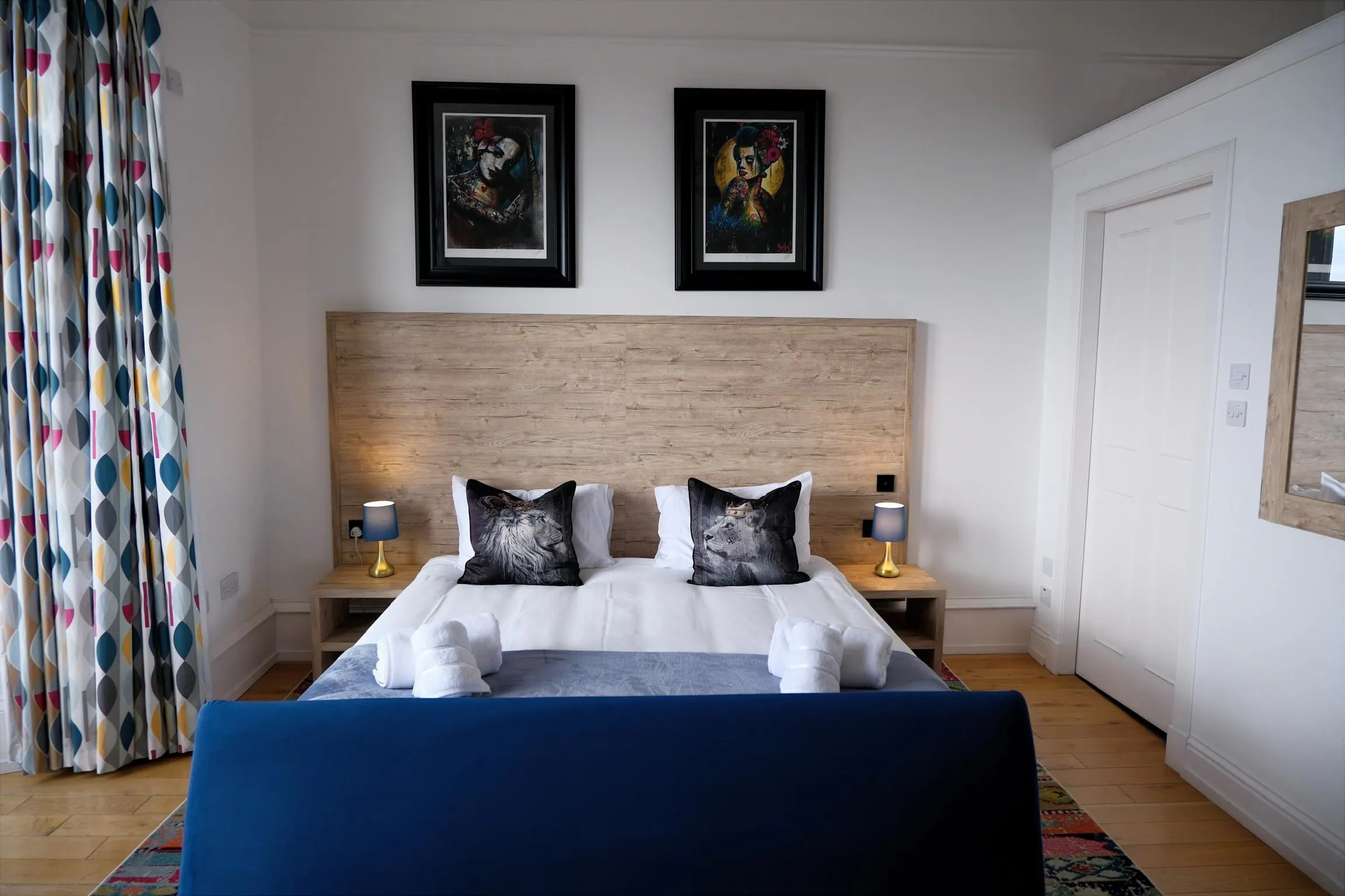 Featuring super king beds with a luxury Hypnos mattress, a fully equipped Kitchenette, separate dining and seating areas, plus a workstation.